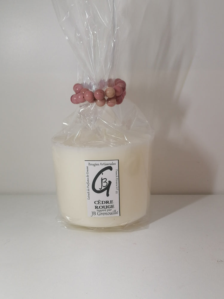 Cette bougie parfumée senteur Cèdre rouge recèle des notes de cèdre du Liban ET Cèdre de virginie plus doux, mélangées avec l'écorce d'orange ,la cannelle et une pointe de clou de girofle.